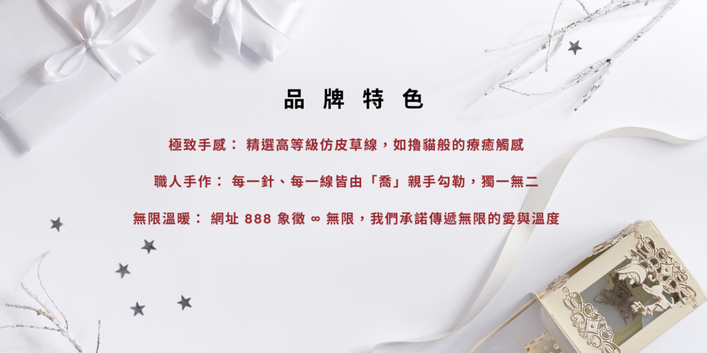 我們堅持使用高品質的「貓尾巴」粗線材,透過職人純手工勾勒,讓每一件作品都帶有機器無法取代的掌心溫度。在這裡,編織不只是技術,而是一種生活態度——不多不少,給生活剛剛好的溫暖。